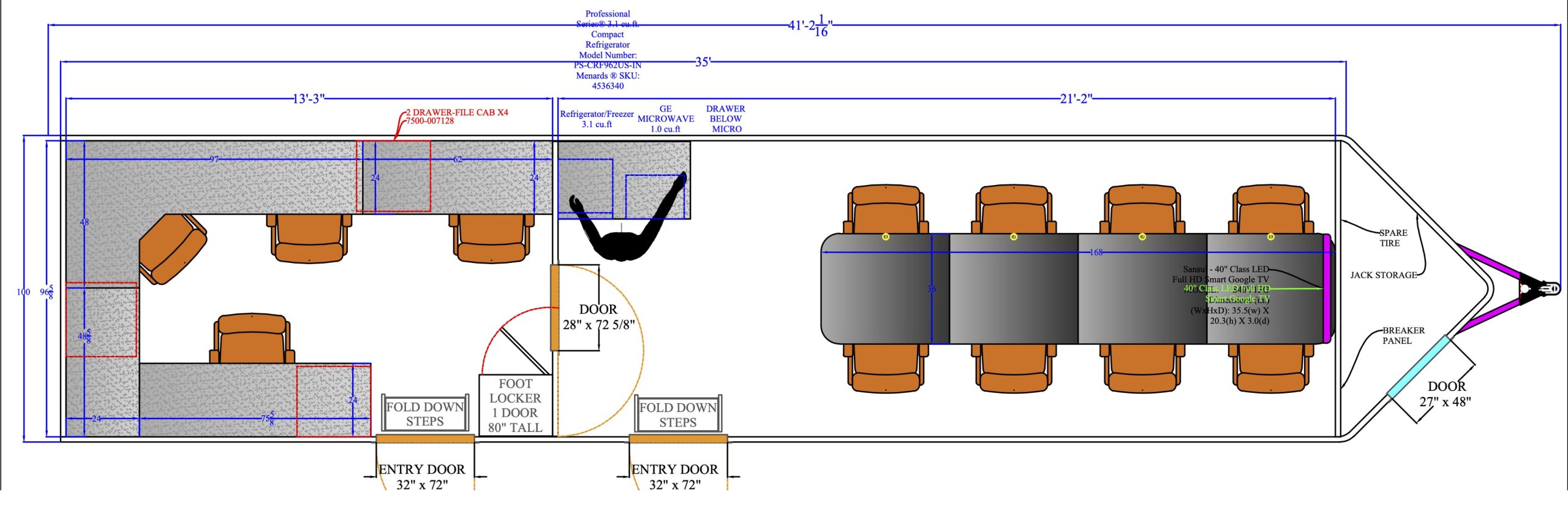 Conference room TrailersSpecialty trailers for commercial use. Conference room Trailer Floor plans 3037 CR – Open 3037 CR with Bench Seating – Rear Office 3037 CR with Bench Seating – Front Office 3541 CR Rear 4 Office